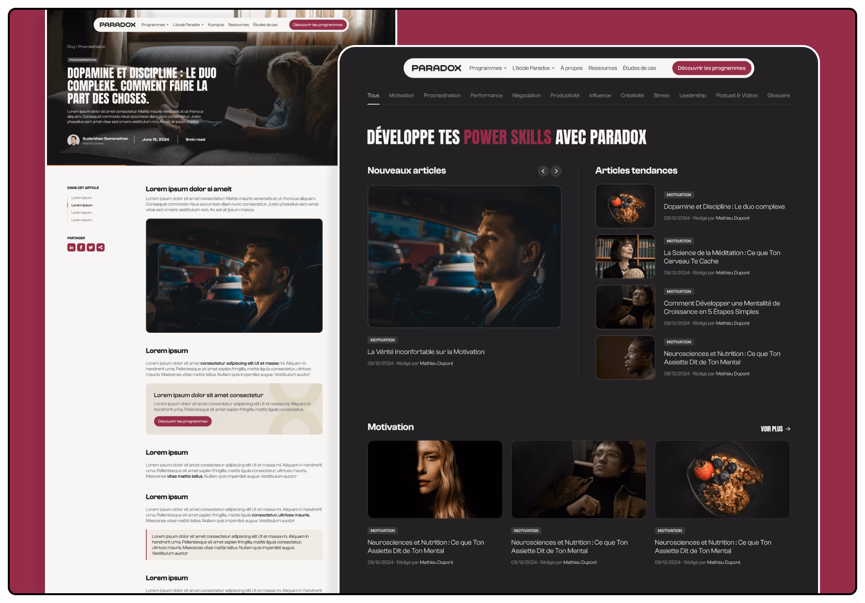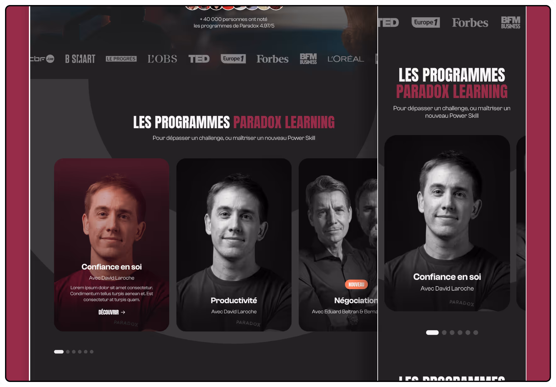 Our design work was guided by a collaborative and iterative approach, we worked closely with the Paradox team to deeply understand their expectations and goals. Our design process focused on creating an engaging and intuitive user interface, while respecting the freshly established visual identity. We regularly collected feedback, which allowed us to gradually refine our work, each iteration was an opportunity to refine the details to better meet customer expectations. This iterative method ensured a constant evolution of the design, in line with the changing requirements of the client. Finally, thanks to this process of continuous adjustments and transparent communication, we managed to achieve a result that satisfied Paradox 200%