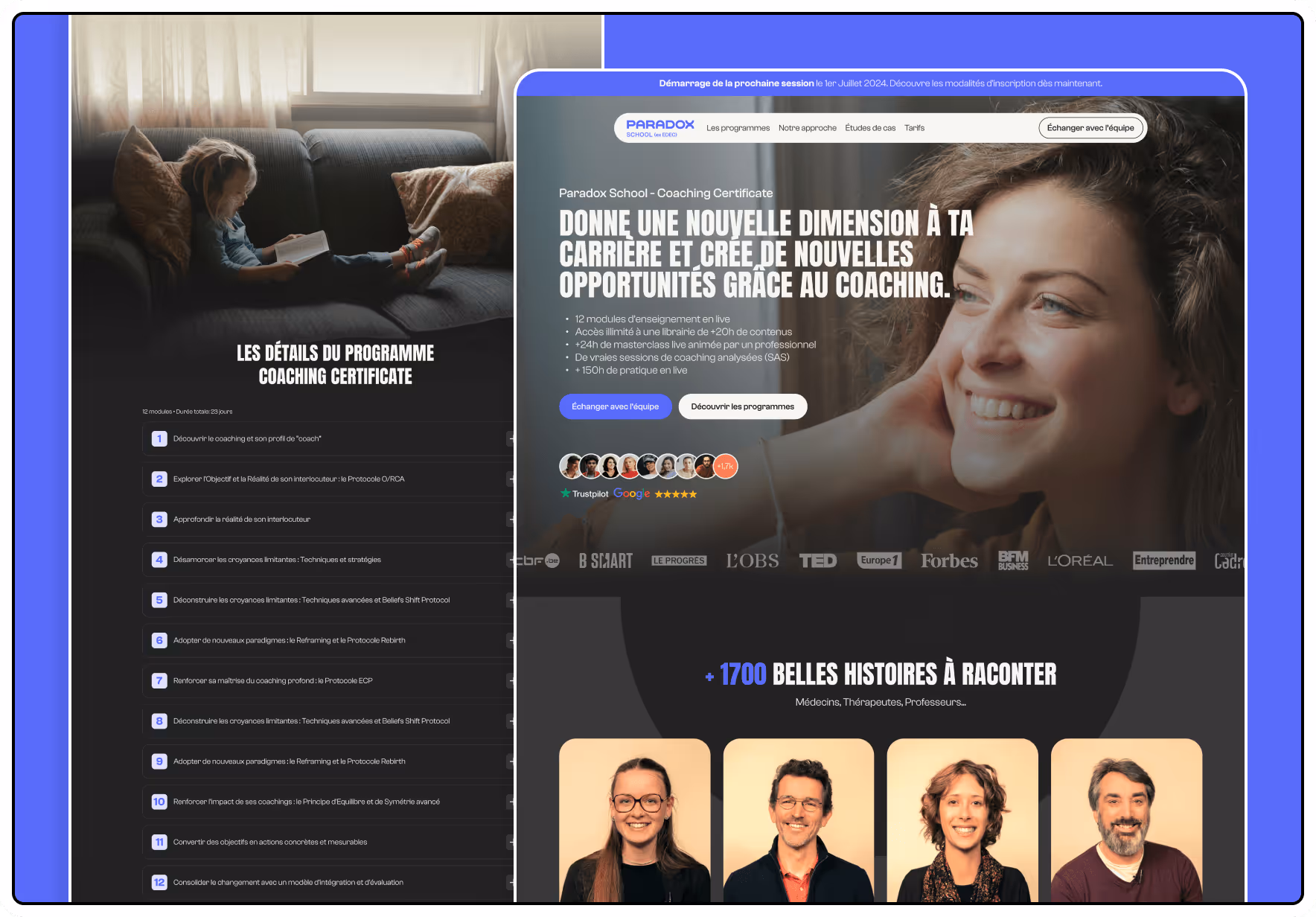 Pour renforcer les cocons sémantiques autour des mots-clés business les plus pertinents et concurrentiels, nous avons construit une architecture CMS adaptée et nous avons réalisé un design aux petits oignons pour soigner l'UX en respectant toutes les meilleures pratiques SXO :