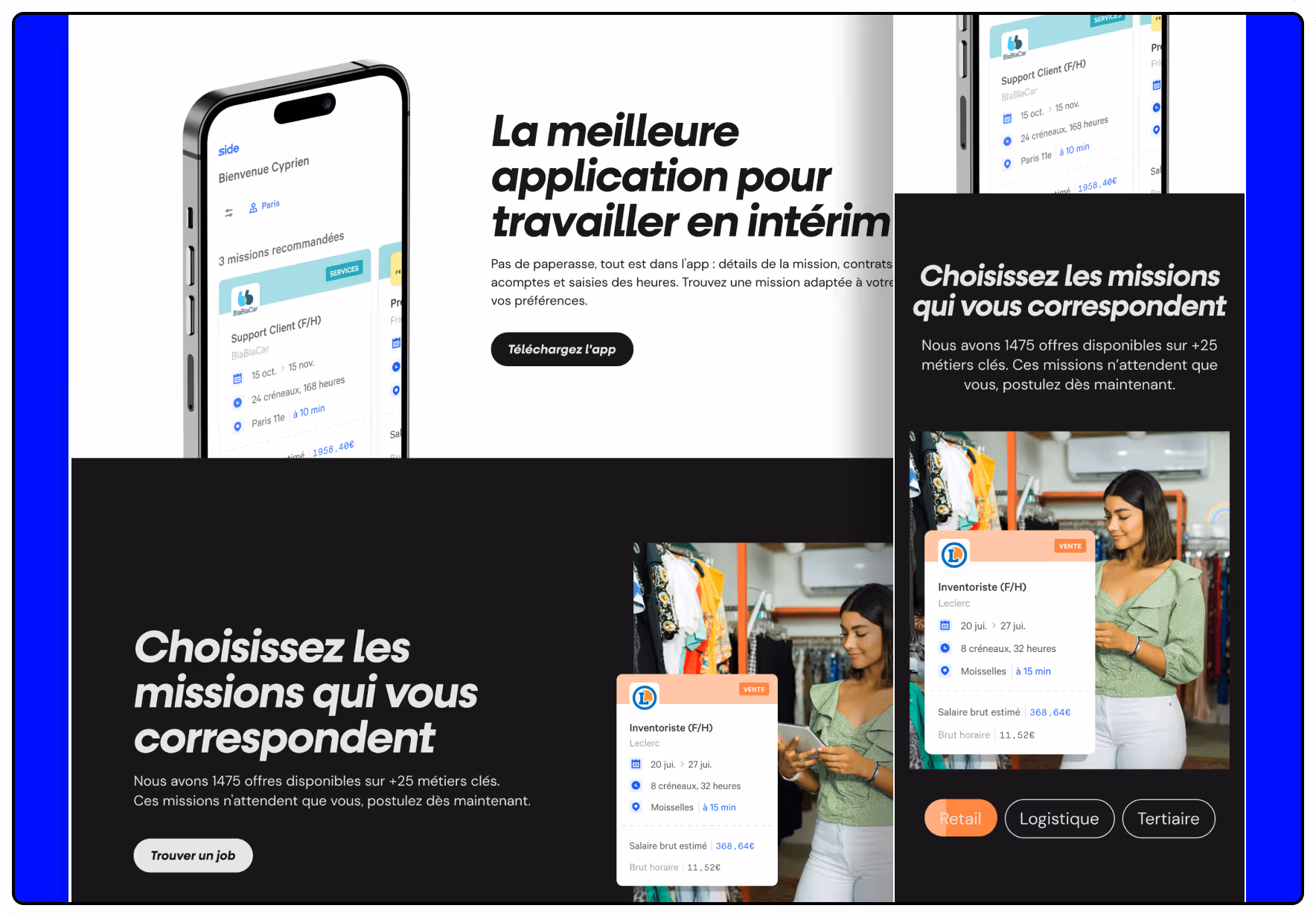 Our intervention on the Side.co project included a meticulous integration on Webflow, scrupulously respecting all best practices.