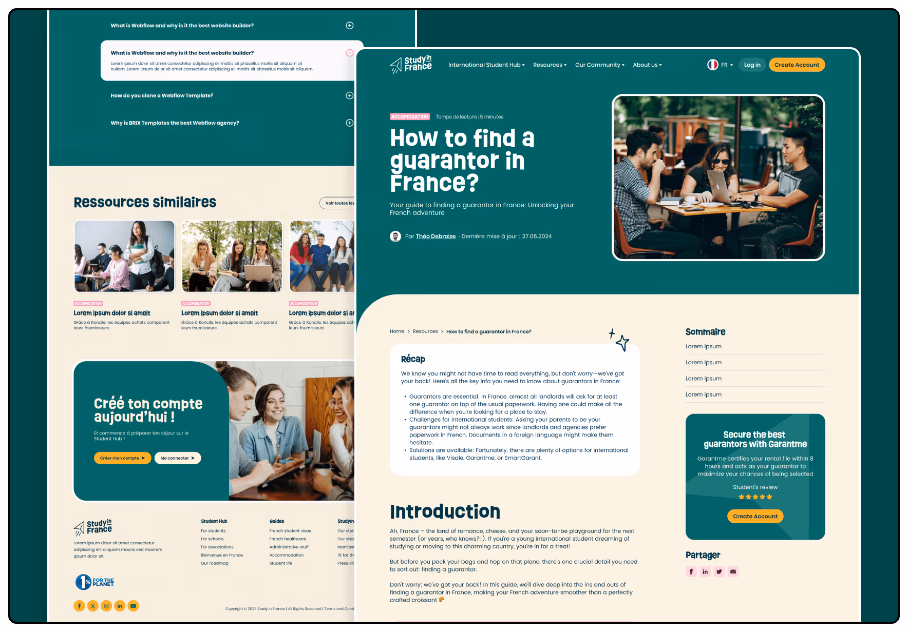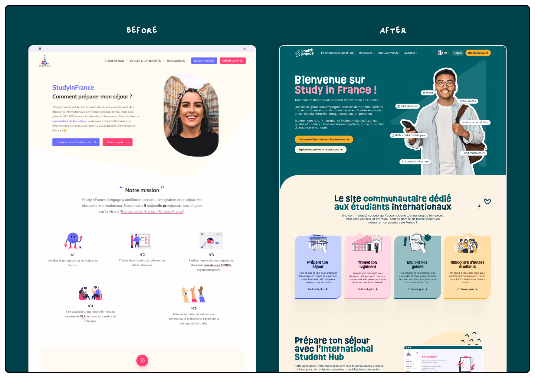 We redesigned the home page and the resource pages of the StudyInFrance website based on their new visual identity, freshly established.